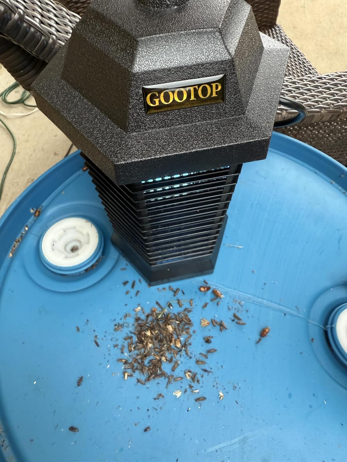 This think was zapping almost immediately when I set it up. I’m in south Florida so we’re in bug heaven. You probably can’t see all the different dead bugs that stuck to it inside, but that’s a lot. Hard to identify them all but I see flies, mosquitoes, moths and little beetles. I know that for mosquitoes you need to run a machine for about a month to break their egg hatching cycle before you see a difference. We will see! The item was super easy to set up just plug in. You’ll definitely need to clean it out periodically due to some bugs getting stuck to the grill, but that’s easy. Looking forward to seeing if we can get a little relief soon as we are entering rainy season. I’ll update later.. This item was boxed up well and was received quickly. I may buy another one as well after seeing the results of the first week 😊