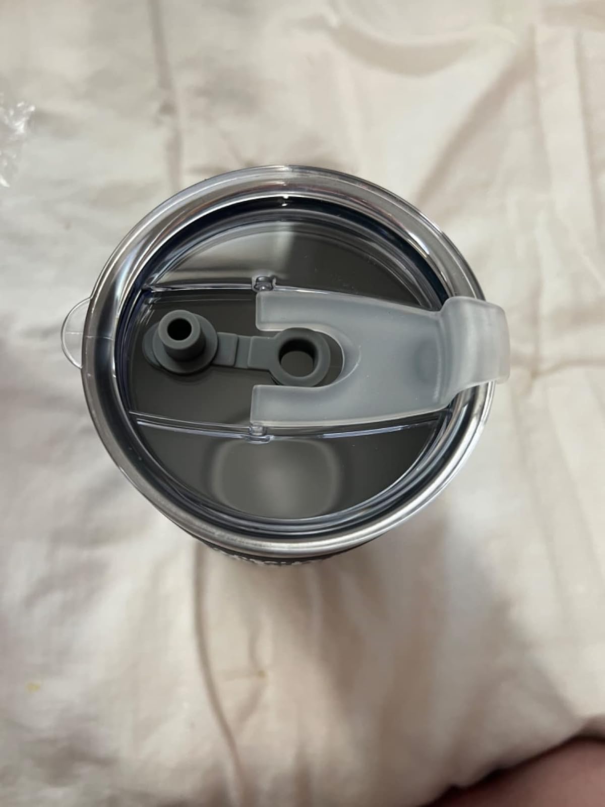 Great mug really nice quality. Comes with a plastic straw too. Wish this came with the rubber foot. The lid is plastic and easy to get off and on. This would make a great gift.